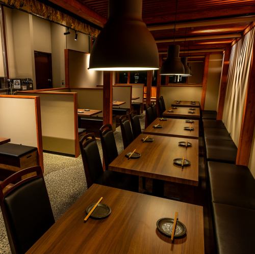 最大38名様までご着席可能なテーブル席個室。少人数での会社宴会や、ご友人との飲み会、女子会・ママ会、記念日のお祝いなど、様々なシーンでご利用いただけます。仕切りを入れて~4名様単位で区切るお席もご用意できますので、接待・会食などのビジネスシーンや、ご両家のお顔合わせにも最適です。
